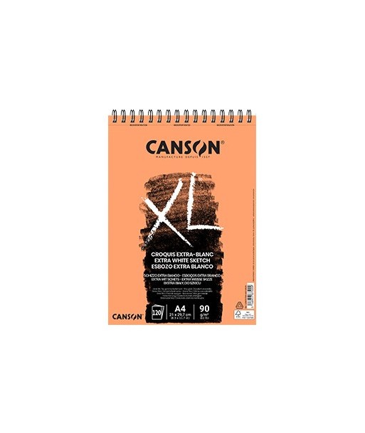 O Canson® XL® Sketch Extra branco é um suporte especialmente conhecido pelos estudantes de belas artes, que utilizam uma grande quantidade de papel e de esboços. ¶É um papel extra branco com uma superfície volumosa. ¶É perfeito para esboços rápidos a lápis, carvão, sanguina e pastel. ¶¶Cor: Extra Branco¶Grão fino¶Formato: Álbuns espiral lado curto ¶A4 - 21 x 29,7 cm¶90gr¶120 Folhas¶¶Certificação FSC¶Livre de ácido