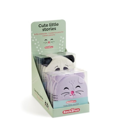 80 Folhas, 80 g/m2 ¶Caderno Panda - Folhas Lisas¶Caderno Hamster - Folhas Pautadas¶¶Caderno de notas: 160 x 160 mm ¶Caixa em PVC: 180 x 170 x 30 mm ¶Capas: Cartão revestido de poliéster felpudo com pormenores bordados. ¶Encadernação: Espiral.¶¶Expositor¶Tamanho: 182 x 380 x 305 mm ¶Conteúdo: Inclui 8 unidades, 4 de cada modelo.