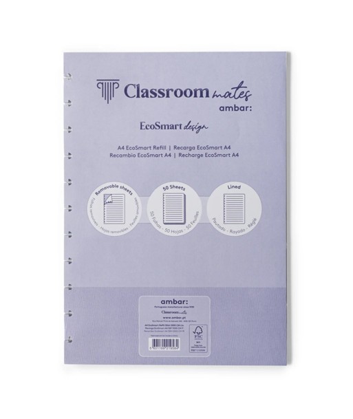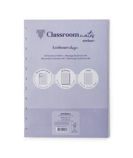 Recarga A4 EcoSmart Pautado¶¶Tamanho do papel: A4¶Número de folhas: 50¶Folhas Removíveis¶Gramagem do papel: 100 g/m²