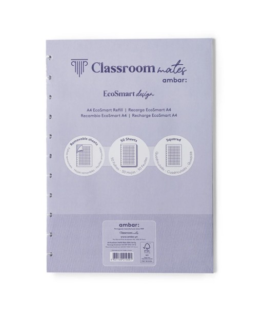 Recarga A4 EcoSmart Quadriculado¶¶Tamanho do papel: A4¶Número de folhas: 50¶Folhas Removíveis¶Gramagem do papel: 100 g/m²