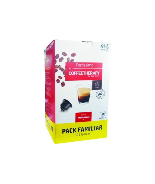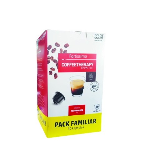 Café Fortíssimo, Intensidade 10¶Categoria: Coffeetherapy - compatível Dolce Gusto¶¶O Fortíssimo Coffeetherapy é um café com uma intensidade excecional apresentando um forte sabor e uma textura densa e cremosa.¶Os grãos selecionados dos cafés IPAC são torrados lentamente de forma artesanal, proporcionando um sabor longo, agradável e cremoso, um verdadeiro café espresso.¶¶Após o uso, as cápsulas Coffeetherapy Fortíssimo compatíveis Dolce Gusto devem ser descartadas no Ecoponto Azul. Colabore para a preservação de nosso Meio Ambiente.¶¶Café espresso encorpado, com creme consistente, suave e aromático, de paladar apurado.¶¶* Marca registada em nome de empresa não relacionada com Ipac Cafés.
