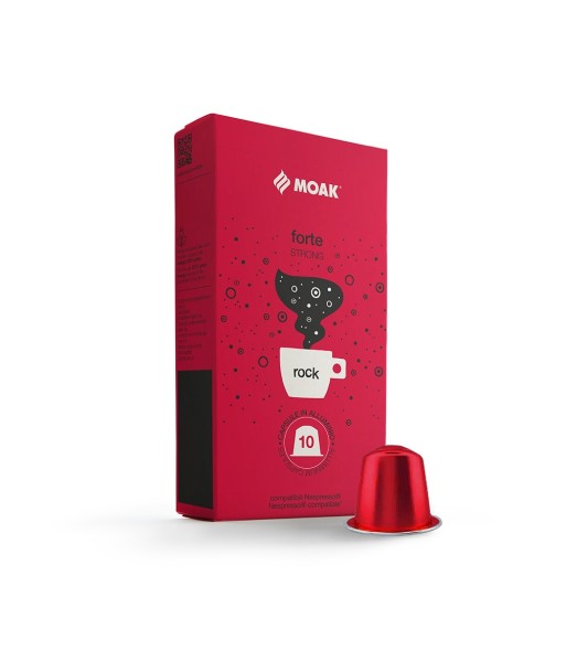 CÁPSULAS MOAK STRONG ROCK COMPATÍVEIS NESPRESSO ¶¶Já ouviu um café? Cinco blends, todos diferentes, cada um combinado com um género musical, com personalidade forte, delicada ou perfumada. ¶Porque o café, tal como a música, para ser um verdadeiro prazer, deve corresponder às notas da alma.¶Escolha o que mais se aproxima do seu gosto!¶¶Excelentes matérias-primas e processo de produção controlado.¶Sentimos fortemente a responsabilidade de reduzir o impacto ambiental.¶Assumimos um compromisso com a natureza.¶Desde o cuidado com que selecionamos os melhores cafés cultivados respeitando o trabalho do homem e do meio ambiente, até o uso de energia 100% de fontes renováveis em todas as nossas atividades.¶¶EU SOU ROCK!¶Arrojada intensidade aromática realçada por uma extraordinária cremosidade. ¶Ideal para quem gosta de um café forte e encorpado. ¶Mistura densa com notas de chocolate preto e amêndoas torradas. ¶Intensidade 5¶Material cápsulas: Alumínio¶As cápsulas são compatíveis com as máquinas Nespresso®*¶*Nespresso® não é uma marca registrada de propriedade do Caffè Moak Spa ou de empresas a ele ligadas e/ou controladas por ele e é usada aqui apenas para fins descritivos.¶¶Origem¶Brasil, Honduras, Congo, Rwanda, Indonesia, Uganda, Vietnam¶¶Compatibilidade¶Citiz, Essenza, Lattissima, Maestria, Pixie, U