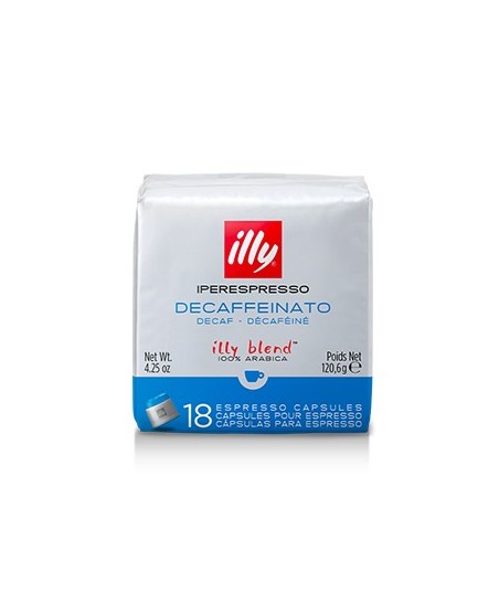 ILLY BLEND 100% ARABICA IPERESPRESSO DECAFFEINATO¶¶O blend único de illy mantém todas as suas características e qualidade também em sua versão descafeinada. ¶O teor de cafeína não ultrapassa 0,1 e um sabor e aroma que vão conquistar o seu paladar.¶O café descafeinado em cápsulas Iperespresso possui grau de torra Classico, caracterizado por um sabor suave e aveludado. ¶Notas delicadas de caramelo, flor de laranjeira e jasmim.¶¶Tipo: Descafeinado¶Cápsulas: Sistema IperEspresso Illy¶Quantidade: 18un