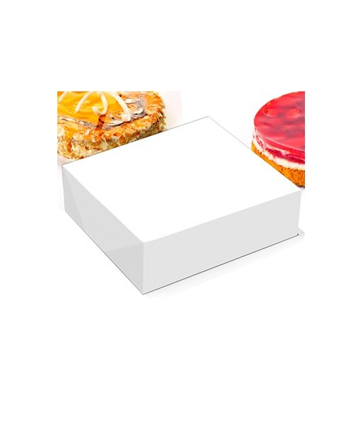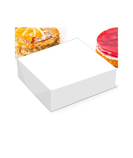 Inoffeco 38 - Caixa de pastelaria.¶¶Caixa com base micro e tampa em cartolina, de cor branca. ¶¶Dimensões: 38x28x9.5cm