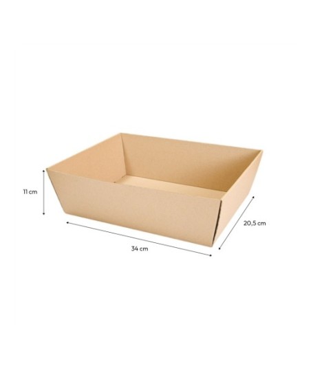 Material: Kraft¶Tamanho: 34 x 20,5 x 11 cm¶Gramagem: 382 g/m²¶¶Certificados: Contato Alimentar, FSC, Registo Sanitário¶¶Biodegradável¶Reciclável¶