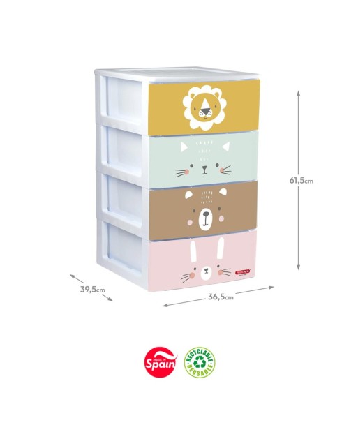 Bloco 4 Gavetas Plástico 36,5x39,5x61,5cm Rin Zoo Sortido