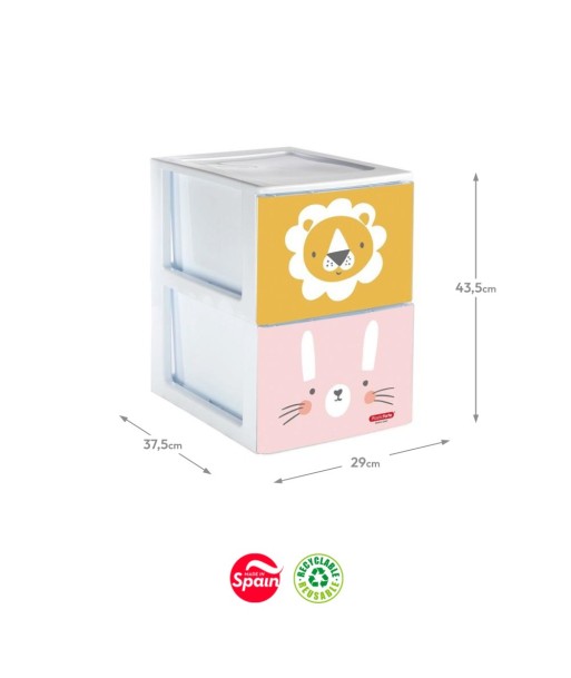 Bloco 2 Gavetas Plástico 29x37,5x43,5cm Volga Zoo Sortido