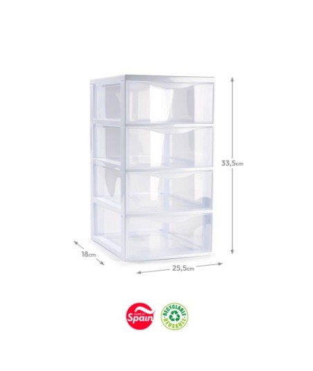 Bloco 4 Gavetas Plástico Duero 25,5x18x33,5cm Transparente