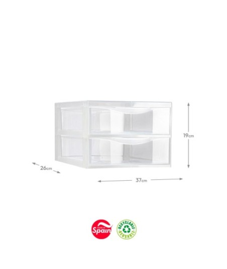 Organize com praticidade e visibilidade com o Bloco Easy de 2 Gavetas.¶Compacto e funcional, é ideal para manter pequenos objetos sempre à mão, seja em casa, no escritório ou na escola.¶¶Características Principais:¶Estrutura em plástico resistente e transparente para fácil visualização do conteúdo¶2 gavetas deslizantes para guardar acessórios, papelaria, cosméticos ou ferramentas¶Design compacto e empilhável¶¶Medidas: 37 x 26 x 19 cm¶¶Ideal para secretárias, estantes, armários ou bancadas¶Uso versátil: perfeito para ambientes domésticos, escolares ou profissionais