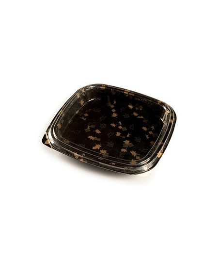 Recipientes e pratos decorados da gama Sushi Box. São feitos para pratos orientais.¶¶Apto para congelador¶Não apto para micro-ondas¶Não apto para o forno¶¶Reciclável¶Resistente a óleos e gordura¶¶Cor da Caixa: Preto¶Cor da Tampa: Transparente¶Faixa de Temperatura: -20ºC/+80ºC.¶Tamanho: 27x27x4,5cm¶¶Certificações: Contacto Alimentar, Reach ¶