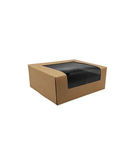 Estes recipientes oferecem uma apresentação elegante e espetacular para o sushi.¶¶Exterior em kraft com janela e interior em preto. ¶¶Adequado para contato alimentar ¶Não apto para micro-ondas ou forno¶Não apto para congelação¶Reciclável¶¶Medidas: 12 x 10 x 4,5 cm