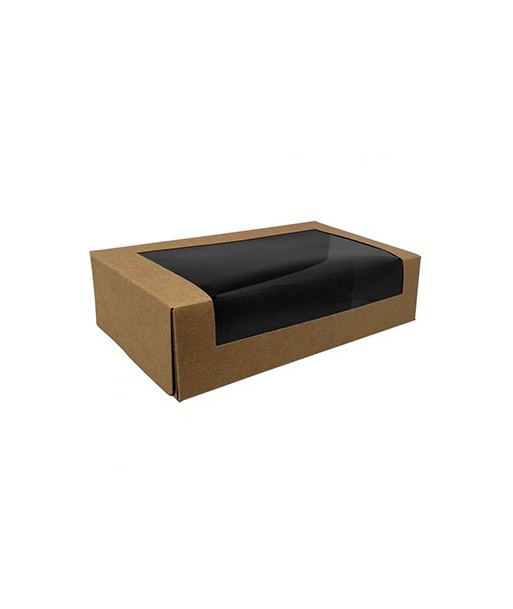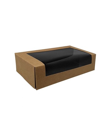 Estes recipientes oferecem uma apresentação elegante e espetacular para o sushi.¶¶Exterior em kraft com janela e interior em preto. ¶¶Adequado para contato alimentar ¶Não apto para micro-ondas ou forno ¶Não apto para congelação ¶Reciclável ¶¶Medidas: 18,5 x 10 x 4,5 cm