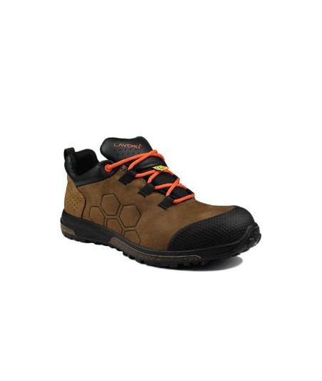 LAVORO - Marca de referência pela qualidade dos produtos e em ajudar o universo laboral a tornar-se mais seguro.¶¶Aplicações do Produto Indústria e Serviços Eletrónica ¶Proteção Biqueira: Kevlar (resistente ao impacto 200J e compressão 15Kn)¶Proteção Palmilha: Compósito (resistente à penetração 1100 N)¶Sola: PU-Borracha diretamente injetado¶Sola: anti-vibração, antiestática, estabilidade lateral, resistente à hidrólise.¶Sola: dissipativa de cargas electroestáticas (ESD) IEC 61340-4-3.¶Palmilha de Limpeza: Lavoro Arnetech X-Max antistatic ¶Materiais do Corte: Pele nobuck Castanha WR¶Materiais do Forro: Têxtil Drylex Preto ¶Largura da Biqueira: 11¶¶Clima Cork System¶Electro Static Dissipative¶100% reciclável¶Antiestático¶Sola resistente até 300º¶Sola resistente a óleos e combustível¶Sola anti-derrapante¶Shock Absorber¶Resistente à água¶¶Norma de Certificação: EN ISO 20345:2011 CE S3 HRO SRC¶Requisitos Adicionais: EC 61340-4-3 ESD CLASS 1