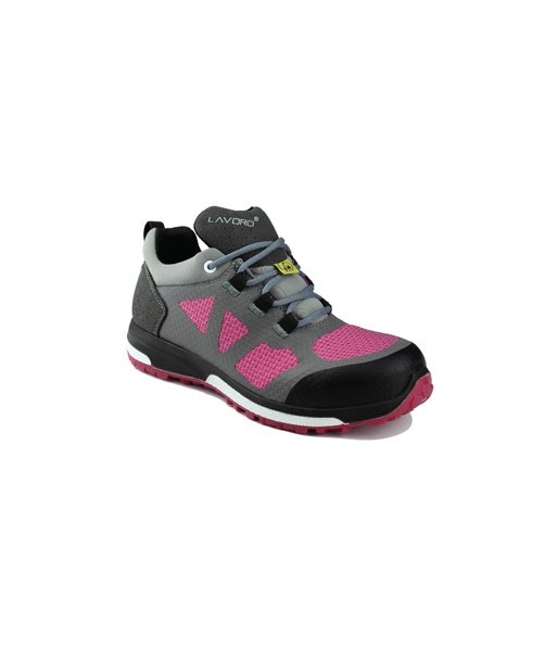 LAVORO - Marca de referência pela qualidade dos produtos e em ajudar o universo laboral a tornar-se mais seguro.¶¶Aplicações do Produto Indústria e Serviços Eletrónica ¶Proteção Biqueira: Kevlar (resistente ao impacto 200J e compressão 15Kn)¶Proteção Palmilha: Compósito (resistente à penetração 1100 N)¶Sola: PU-Borracha diretamente injetado¶Palmilha de Limpeza: Lavoro X-Max antiestática ¶Materiais de Corte: Têxtil High-Tech Rosa e Película Cinza¶Materiais do Forro: Têxtil Drylex Preto ¶Largura da Biqueira: 11¶¶Clima Cork System¶Electro Static Dissipative¶100% reciclável¶Antiestático¶Sola resistente até 300º¶Sola resistente a óleos e combustível¶Sola anti-derrapante¶Shock Absorber¶100% Não Metálico¶¶Norma de Certificação: EN ISO 20345:2011 CE S3 HRO SRC¶Requisitos Adicionais: EC 61340-4-3 ESD CLASS 1