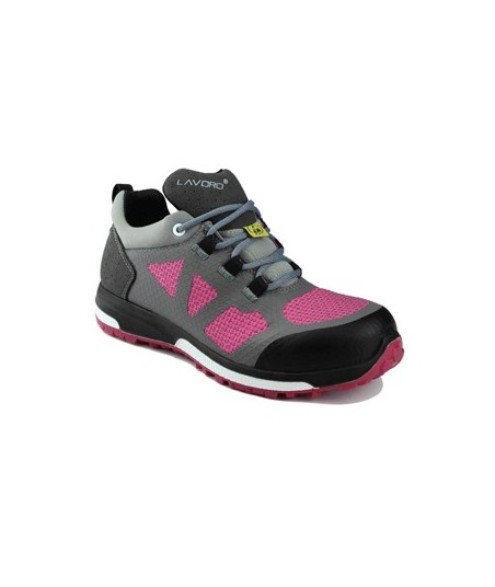 LAVORO - Marca de referência pela qualidade dos produtos e em ajudar o universo laboral a tornar-se mais seguro.¶¶Aplicações do Produto Indústria e Serviços Eletrónica ¶Proteção Biqueira: Kevlar (resistente ao impacto 200J e compressão 15Kn)¶Proteção Palmilha: Compósito (resistente à penetração 1100 N)¶Sola: PU-Borracha diretamente injetado¶Palmilha de Limpeza: Lavoro X-Max antiestática ¶Materiais de Corte: Têxtil High-Tech Rosa e Película Cinza¶Materiais do Forro: Têxtil Drylex Preto ¶Largura da Biqueira: 11¶¶Clima Cork System¶Electro Static Dissipative¶100% reciclável¶Antiestático¶Sola resistente até 300º¶Sola resistente a óleos e combustível¶Sola anti-derrapante¶Shock Absorber¶100% Não Metálico¶¶Norma de Certificação: EN ISO 20345:2011 CE S3 HRO SRC¶Requisitos Adicionais: EC 61340-4-3 ESD CLASS 1