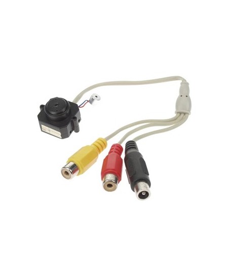 Mini-câmara de vigilância (26 x 21mm) para armazéns, fábricas, ...¶¶Elemento de pick-up: 1/3 "color CMOS¶Número de pixels: 628 x 582¶Digitalização do sistema: PAL¶Resolução: 380 linhas de TV¶Min. iluminação: 1,5 Lux / F2.0¶S / N ratio:> 48dB¶Obturador eletrónico: 1/50 a 1/15000 seg¶Correção gama: 0,45¶¶Ajustes automáticos:¶Exposição¶Ganho¶Correção gama¶Balanço de branco¶Lente: f2.8mm¶Lente de ângulo: 60 °¶Saída de vídeo: 1.0Vpp composto, 75 ohms (conector RCA amarelo)¶Saída de áudio: conector RCA¶Fonte de alimentação: 8VDC / 100mA (regulada, adaptador de alimentação e incl Adaptador 9V bateria).¶Temperatura de operação: -10 °C ~ 45 °C¶Temperatura de armazenamento: -30 °C ~ 60 °C¶Dimensões: 26 x 21 x 18 milímetros¶Peso: 26g¶Comprimento do cabo: ± 25 centímetros¶¶Tipo de embalagem: Blister Duplo
