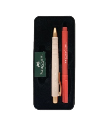 Set Escrita Poly Ball Urban + Broadpen Faber Castell Rosa com Estojo¶¶Inclui:¶¶1x Esferográfica Poly Ball Urban Rosa Pálido, Cor da Tinta em Azul¶1x Marcador Fineliner Broadpen Pêssego Pastel¶1x Estojo gift metal Preto¶