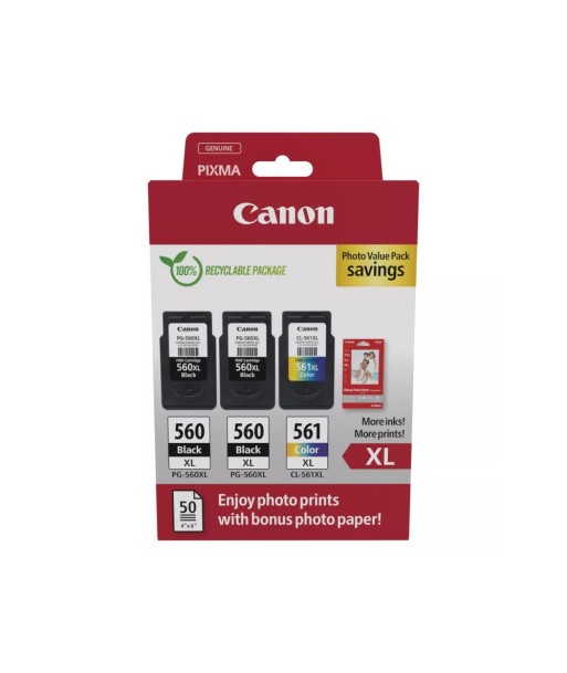 Pack Tinteiros Canon 560XLx2/561XL Preto/Cor+Papel 3712C012