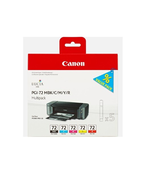 Pack Tinteiros Canon 72 5 Cores 6402B009 ¶14ml ¶¶Preto Matte¶Amarelo ¶Azul¶Magenta¶Vermelho ¶¶Impressoras Compatíveis:¶¶Canon Pixma Pro 10¶Canon Pixma Pro 10 S