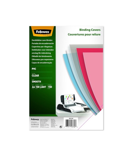 Capas em PVC A4 150 mícrons Transparentes Pack de 100 unidades¶¶Capas em PVC muito resistentes. A solução económica para as suas apresentações¶PVC transparente, tamanho A4¶150 mícrons de espessura¶Pack de 100 unidades¶Adequada para qualquer tipo de encadernadora de wire (espiral metálica), argolas e espiral