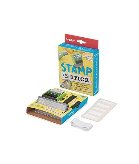 O pack Stamp & Stick é a maneira divertida para marcar os seus pertences.¶Ele conta com tinta têxtil testada dermatologicamente que permite marcar diretamente em roupas claras ou utilizando fita de tecido para marcação em roupas escuras.¶Também poderás colocar o teu nome em Calçado, Vestuário, Frascos, Garrafas Lápis, Canetas, Estojos, Etiquetas de Roupa ou no que mais desejares utilizando etiquetas.¶¶Composição do kit:¶1x Carimbo Typo¶1x Pinça¶1x Conjunto com letras e número com fonte tamanho 4mm¶30x etiquetas autocolantes em 2 tamanhos: Estreito (40x10mm) e Largo (40x15mm)¶1m de fita Tecido¶¶Recargas compatíveis:¶#5721130 - Carimbo Stamp & Stick Trodat Pack (Recarga) ¶