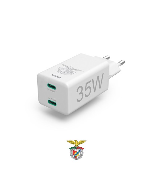 Carregador USB-C 2 Portas PD/QC 35W Rápido Benfica Branco
