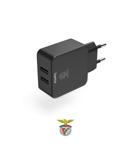 Carregador USB-A 2 Portas 12W Benfica Preto