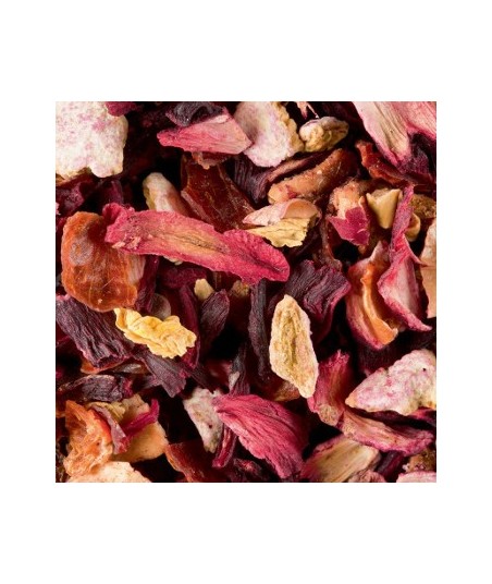 Mistura de flores de hibisco, pedaços de maçã, cascas de rosa mosqueta e cascas de laranja deliciosamente perfumadas com aromas de pêssego e damasco.¶¶Nota Dominante: Frutos do pomar¶Tipo: Infusão de Frutas¶Sabor Principal: Hibiscos¶Sabores Complementares: Damasco, pêssego¶¶Infusão: 5/6 min¶Temperatura: 100°C/212°F¶