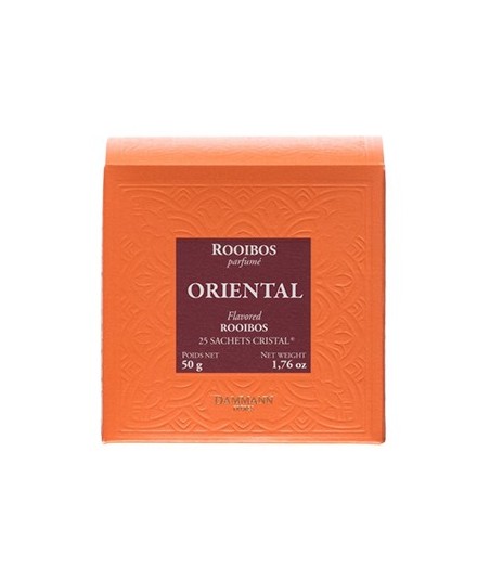 Variação em rooibos do bouquet de sabores que caracteriza o nosso famoso blend de chá L'Ôriental. ¶Desfrute da doçura dos rooibos deliciosamente associada às notas de maracujá, pêssego e morango. ¶¶Caixa com 25 saquinhos de chá Cristal®. Peso líquido: 50 g / 1,76 oz¶¶Nota dominante: frutas exóticas¶Tipo (s) de chá: Rooibos¶Sabor principal: Maracujá¶Sabor (es) complementar (es): Pêssego, Morango¶¶Infusão 4/5 min¶Temperatura 90 ° C / 194 ° F¶Momentos Noite¶