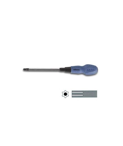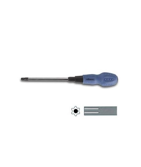 TORX, desenvolvido por Camcar LLC do Acument Tecnologias Globais (antigo Camcar Textron), é a marca registrada para um tipo de cabeça de parafuso caracterizado por uma chave de 6 pontas formando uma estrela. O nome genérico é chave interna hexalobular e é unificado pela ISO (Organização Internacional para Padronização) como ISO 10664.¶¶Pelo design, a chave TORX possui uma resistência maior a pressão de encaixe do que a chave Phillips pelo seu formato do encaixe como uma cabeça de parafuso. ¶A cabeça da chave Phillips é projetada para sair para fora da fenda evitando assim que um aperto muito forte possa danificar o encaixe. ¶Por esta razão as indústrias usam mais a chave TORX pois são mais eficientes em processos automatizados.¶¶A chave TORX foi desenvolvida no Camcar centro Técnico, situado em Rockford, Illinois.¶Os parafusos TORX são encontrados com mais frequência em automóveis, sistemas de computador (Compaq usa quase exclusivamente parafusos T15), equipamentos eletrónicos e brinquedos de uma forma em geral.¶¶Feito de aço Cr-V¶Ponta: T27 + centro¶Comprimento do eixo: 125mm¶Comprimento com o cabo: 260mm¶