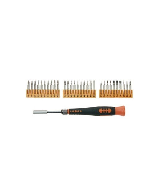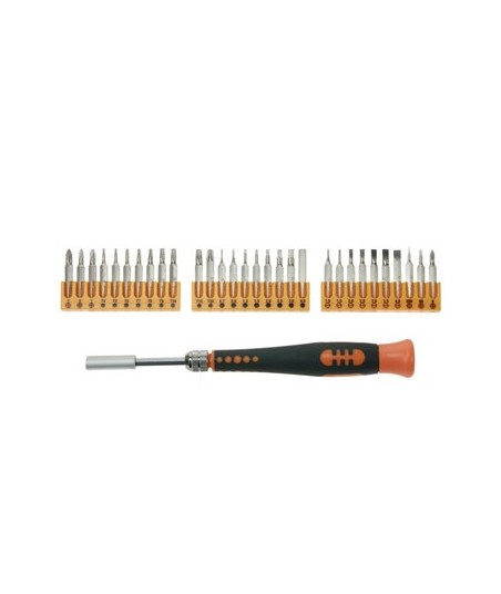 Pega especial com tampa giratória¶¶Legenda:¶(1) cabeça rotativa: para facilitar o suporte e controle de rotação¶(2) Pega macia: pega ergonómica para a posição de aperto flexível e torque¶(3) sulco: para uma melhor aderência e uma rotação mais rápida¶(4) de fixação: para garantir os bits de bloqueio¶(5) da lâmina: consiste de uma liga de aço-cromo HQ, tratado termicamente¶ ¶Contém:¶1 x cabo: 113 x 20mm¶1 x lâmina: 115 x 7mm¶30 bits (25mm):¶Plana: 1, 1,5, 2, 2,5, 3, 3,5, 4¶PH: PH000, PH00, PH0, PH1¶PZ: PZ0, PZ1¶Estrela: T4, T5, T6, T7, T8, T9, T10, T15, T20¶Hex: 0,7, 0,9, 1,3, 1,5, 2,0, 2,5, 3,0, 4,0¶Peso: 120g¶ ¶Tipo de embalagem: Blister cartão