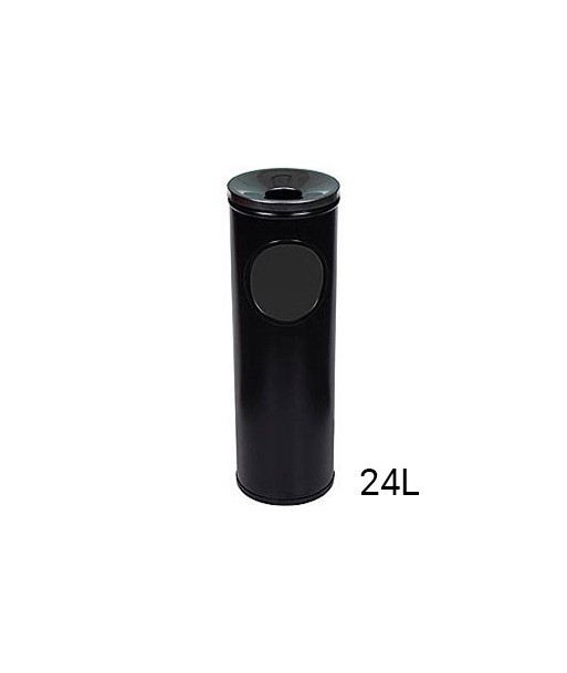 Cinzeiro papeleira redondo preto.¶Medidas 65 x 21,5 cm.¶Aço inoxidável.¶Cinzeiro em epoxy preto.¶Aro inferior em pvc.¶Capacidade 24 litros.