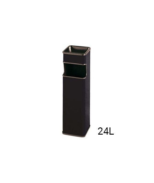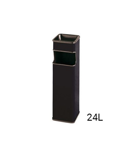 Cinzeiro papeleira quadrado preto.¶Medidas 65 x 18 x 18 cm.¶Pintado em epoxy preto.¶Adorno na abertura retangular frontal.¶Capacidade de 24 litros.