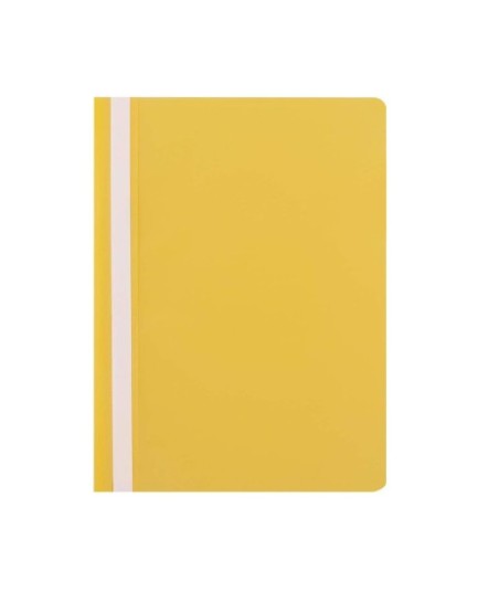 A capa transparente mostra a primeira página do documento.¶Com ferragem de palheta plástica, porta etiqueta e capa cristal transparente.¶Formato A4
