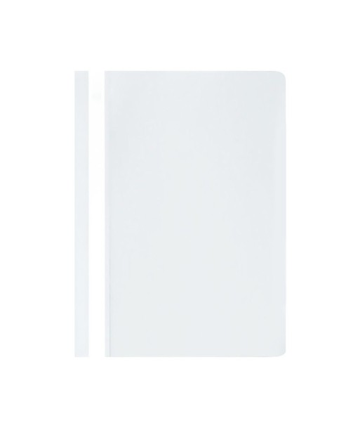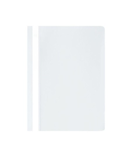 A capa transparente mostra a primeira página do documento.¶Com ferragem de palheta plástica, porta etiqueta e capa cristal transparente.¶Formato A4¶