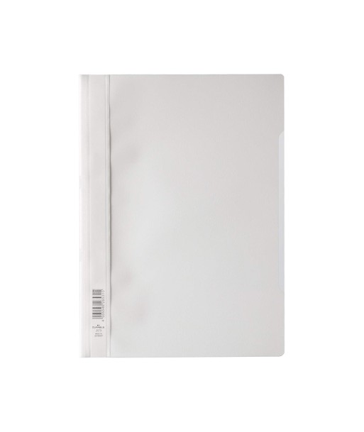 Pasta transparente com capa frontal transparente e contracapa branca. ¶¶Arquiva documentos perfurados através do mecanismo de arquivamento¶Recorte prático para alça¶Faixa de identificação lateral¶Indelével graças ao material de polipropileno ¶¶Para formato A4¶Espaçamento entre furos: 80mm ¶Quantidade de enchimento: 100 Folhas¶¶Material: Plástico¶Dimensões externas (L x A): 228 x 310 mm¶