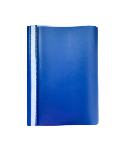 Pasta transparente com capa frontal transparente e contracapa azul. ¶¶Faixa de identificação lateral ¶Para formato A4