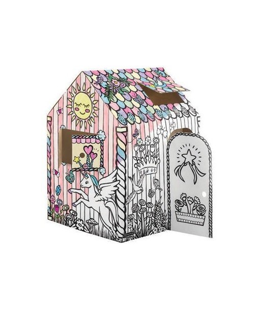 Horas de diversão a brincar com estas casinhas fabricadas em cartão duradouro e reciclável com rebordos arredondados adaptados para crianças.¶¶Podem ser pintadas com lápis de cera, marcadores, lápis de cor ou guache (não incluídos)¶Janelas e portas abatíveis¶Desenhadas conforme os standards da CE¶Fácil montagem em 2 peças sem necessidade de fita adesiva ou cola¶As casas de brincar para crianças desenvolvem habilidades manuais, estimulam a criatividade e a imaginação, são perfeitas para a prática da destreza manual.¶¶Dimensões casa montada¶Altura: 121,30cm¶Largura: 96,5cm¶Profundidade: 81,3cm¶¶Indicada para crianças maiores de 3 anos!