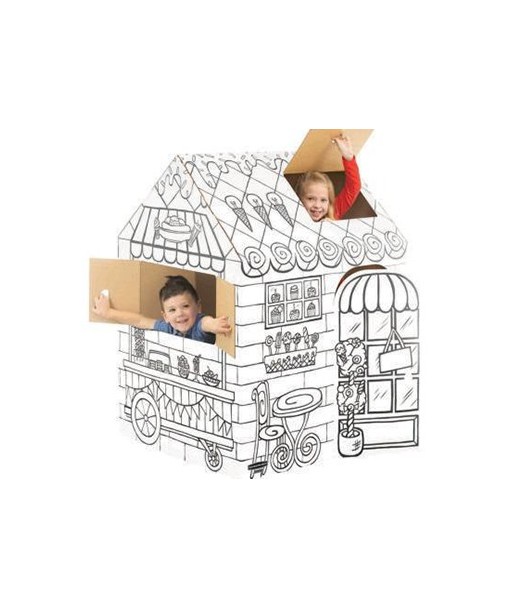 Horas de diversão a brincar com estas casinhas fabricadas em cartão duradouro e reciclável com rebordos arredondados adaptados para crianças.¶¶Podem ser pintadas com lápis de cera, marcadores, lápis de cor ou guache (não incluídos)¶Janelas e portas abatíveis¶Desenhadas conforme os standards da CE¶Fácil montagem em 2 peças sem necessidade de fita adesiva ou cola¶As casas de brincar para crianças desenvolvem habilidades manuais, estimulam a criatividade e a imaginação, são perfeitas para a prática da destreza manual.¶¶Dimensões casa montada¶Altura: 121,30cm¶Largura: 96,5cm¶Profundidade: 81,3cm¶¶Indicada para crianças maiores de 3 anos¶¶