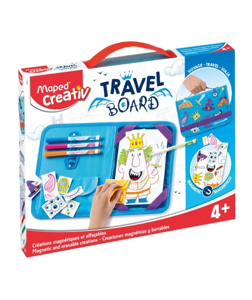 Um kit de desenho e de recreação dos cavaleiros e das princesas para levar para todo o lado.¶¶Mala compacta com pega de transporte que contém um quadro branco magnético de apagar a seco, 12 ímanes com temas de fantasia, 4 marcadores de apagar a seco e um pano de limpeza.¶Inclui uma folha com divertidos ímanes de cavaleiros e princesas para criar os seus próprios cenários de fantasia.¶Quadro de plástico à prova de choque que não se parte. ¶¶Apaga-se sem deixar rasto e pode ser utilizado vezes sem conta!¶¶Idade recomendada: + 4 anos¶