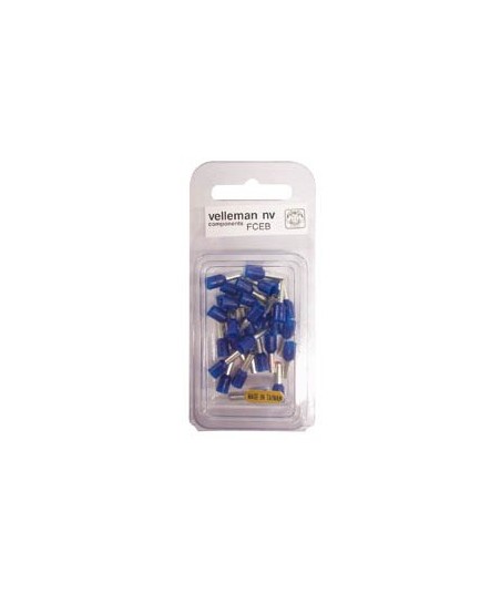 Ø: 2,50 milímetros ²¶Cor: Azul¶Pacote: 30 peças em blister¶Para utilização com: ferramenta de cravamento VTECT ¶¶Cores:¶Amarelo: AWG 12 / 3,2 milímetros (4,0 mm ²) / 5,5 milímetros¶Azul: AWG 14 / 2.5mm (2.5mm ²) / 4,8 milímetros¶Preto: AWG 16 / 2,0 mm (1,5 mm ²) / 4,1 milímetros¶Vermelho: AWG 18 / 1,7 milímetros (0,5 mm ²) / 3,6 milímetros¶Cinza: AWG 20 / 1,5 mm (0,75 mm ²) / 3,4 milímetros¶Branco: AWG 22 / 1,3 milímetros (0,5 mm ²) / 3,2 milímetros¶¶Tipo de embalagem: Blister Duplo
