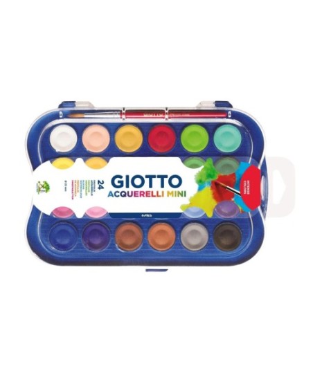 Aguarelas Giotto em nova embalagem com cores ainda mais ricas e brilhantes e mais fáceis de espalhar.¶Dilua a tinta com água para maior transparência e excelentes efeitos de aquarela.¶¶As pastilhas têm 23 mm de diâmetro, estão disponíveis em novas embalagens com tampa que funciona como paleta, e o design prático evita o vazamento de água.¶A embalagem também contém um pincel de boa qualidade com cerdas sintéticas.¶¶Perfeito para crianças.¶Pronto para usar.¶¶Aviso de segurança:¶A partir de 3 anos +. Evite contacto com os olhos