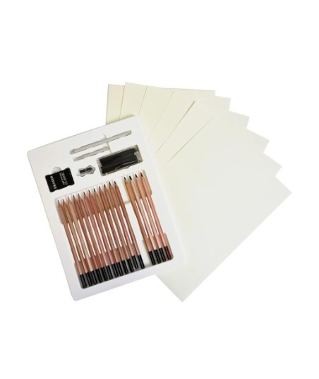 Fabricados em Inglaterra desde 1783, Daler-Rowney continua a inspirar artistas em todo o mundo.¶Produtos exclusivos em todos os canais e categorias de produtos pertencentes às artes plásticas, com linhas de produtos personalizadas para artistas profissionais e amadores, bem como estudantes e iniciantes. ¶¶Descrição detalhada:¶¶Desenho: 1 X 4H, 2H, H, F, HB, B, 2B, 3B, 4B, 5B, 6B, 8B, Sanguina , Sépia, 2 Lápis carvão, 2 x esfuminhos, 4 x paus de carvão¶Borracha¶Apara-lápis metálico¶16 folhas A4 papel para desenho