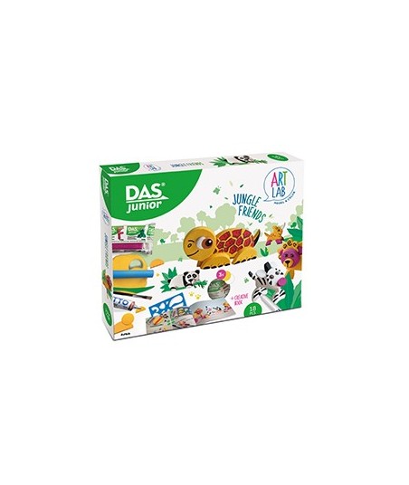 Modele e pinte a selva, com Das Junior Art Lab Jungle Friends. ¶Uma novidade do Art lab para os amantes dos animais. ¶Descubra as inúmeras combinações possíveis e invente seus próprios amigos da selva! ¶¶Contém tudo o que precisa para criar animais divertidos e exóticos: ¶3x Blocos de argila DAS Junior de 100g¶1X Estêncil e 4 moldes de metal em forma de círculo, oval, lua e flor para modelar partes do Corpo¶1x Tubo de cola Giotto Gelik¶1x Pincel¶4x Canetas hidrográficas Giotto Decor multisuperfícies para desenhar e colorir os detalhes finais. ¶¶Idade recomendada: +3¶¶¶