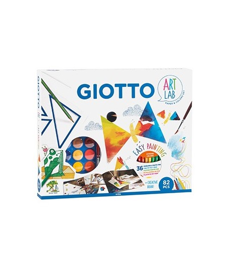 Entre pintar desenhar, e colorir, este conjunto Giotto permite que te expresses criativamente das mais diversas formas. Dá uma vista de olhos no livro criativo quando quiseres ideias para o teu próximo projecto.¶Quantas coisas podes fazer com um triangulo? Com a máscara gráfica e o livro criativo podes desenhar e pintar paisagens, árvores, borboletas e galinhas muito facilmente! ¶¶Conteúdos:¶20 folhas de papel Giotto brancas¶Contém 1 pincel, 24 aguarelas Giotto Acquerelli Mini, 36 canetas Giotto Turbocolor, e 1 lápis Giotto Matita¶Inclui um livro criativo e uma cartolina com formas recortadas¶¶AVISO: Contém peças pequenas que podem causar asfixia caso ingeridas. Não recomendado a menores de 3 anos¶