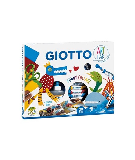 Quantas coisas podes fazer com colagens? Com cola, tesoura, guache, pincel e um livro Criativo, podes fazer bonecos, baleias e plantas carnívoras com muita facilidade! ¶¶Contém:¶5 cores x10 ml. Guache em tubo¶1 Frasco cola Giotto Collage 120grs¶1 Pincel Taklon nº 10¶1 tesoura¶Giotto Álbum Kids A4 20 folhas coloridas 120 grs¶1 livro criativo.¶¶Idade recomendada: + 3 anos