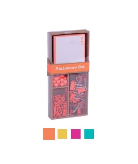 Design moderno e atraente para manter a sua mesa atualizada.¶¶25x sinalizadores¶80x clips de 28mm¶20x molas de 19mm¶Bloco adesivo de 100 folhas¶(Amarelo / Laranja / Azul / Rosa)
