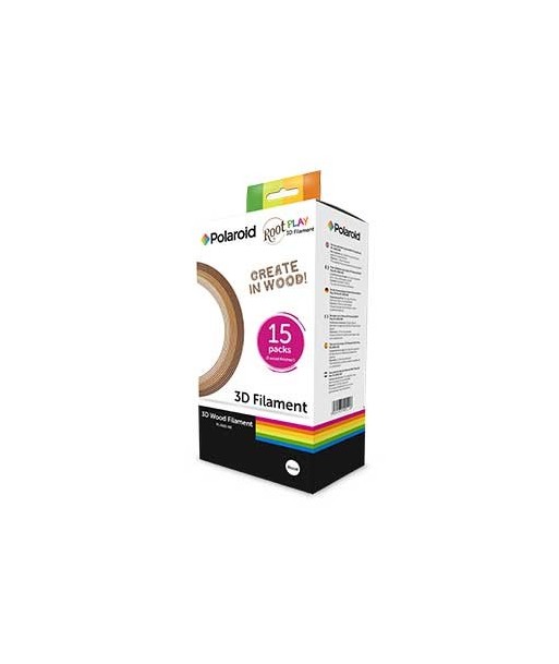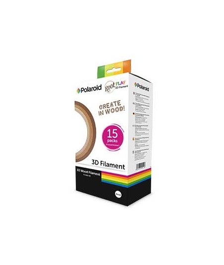 Caixa de Filamentos Polaroid para Canetas 3D WOOD (3 tons)¶¶! para usar com a Caneta Polaroid ROOT (Madeira) Play 3D Pen ¶ou com qualquer outra marca desde que a caneta 3D seja adequada ao filamento WOOD.¶¶Inclui: ¶15 x 15g (5m) Filamentos de madeira em 3 tons de acabamento.¶¶Cada 15g tem 1,75mm de diâmetro e dura aproximadamente 30minutos de desenho contínuo.¶¶