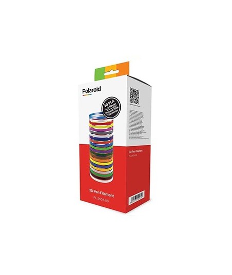 Caixa de Filamentos Polaroid para Canetas 3D PLA (20 cores) + 2 cores Silk Oferta¶¶! para usar com a Caneta Polaroid Play 3D Pen, a Caneta Polaroid FAST Play 3D Pen ou com a Caneta Polaroid Play+ 3D Pen¶! adequado para qualquer caneta 3D que use filamentos de PLA.¶¶Inclui: ¶20 x 15g (5m) Filamentos PLA em 20 cores fantásticas,¶Inclui também 4 cores fluorescentes para criar modelos que brilham sob uma luz UV¶¶Cada 15g tem 1,75mm de diâmetro e dura aproximadamente 30minutos de desenho contínuo.¶¶Branco, Preto, Amarelo, Vermelho, Prata, Laranja, Rosa, Verde, Azul, Ouro, Chocolate, Cinzento, Roxo, Verde escuro, Azul escuro, Transparente, Vermelho fluorescente, Azul fluorescente, Verde fluorescente, Amarelo fluorescente.¶¶¶! O PLA é um plástico bio-compostável ecológico feito de amido de milho.
