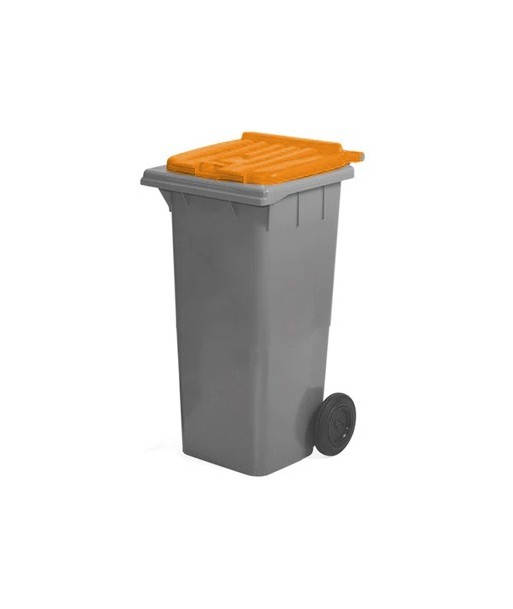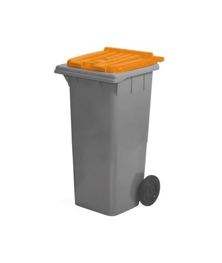 Contentor 120L Plástico 2 Rodas Fundo Preto Tampa Laranja